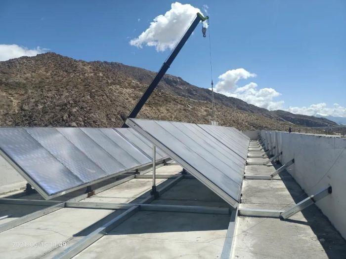 三峽電商積極參加西藏援建項目,圖為其組織供應的電暖系統(tǒng)設備正在吊裝。