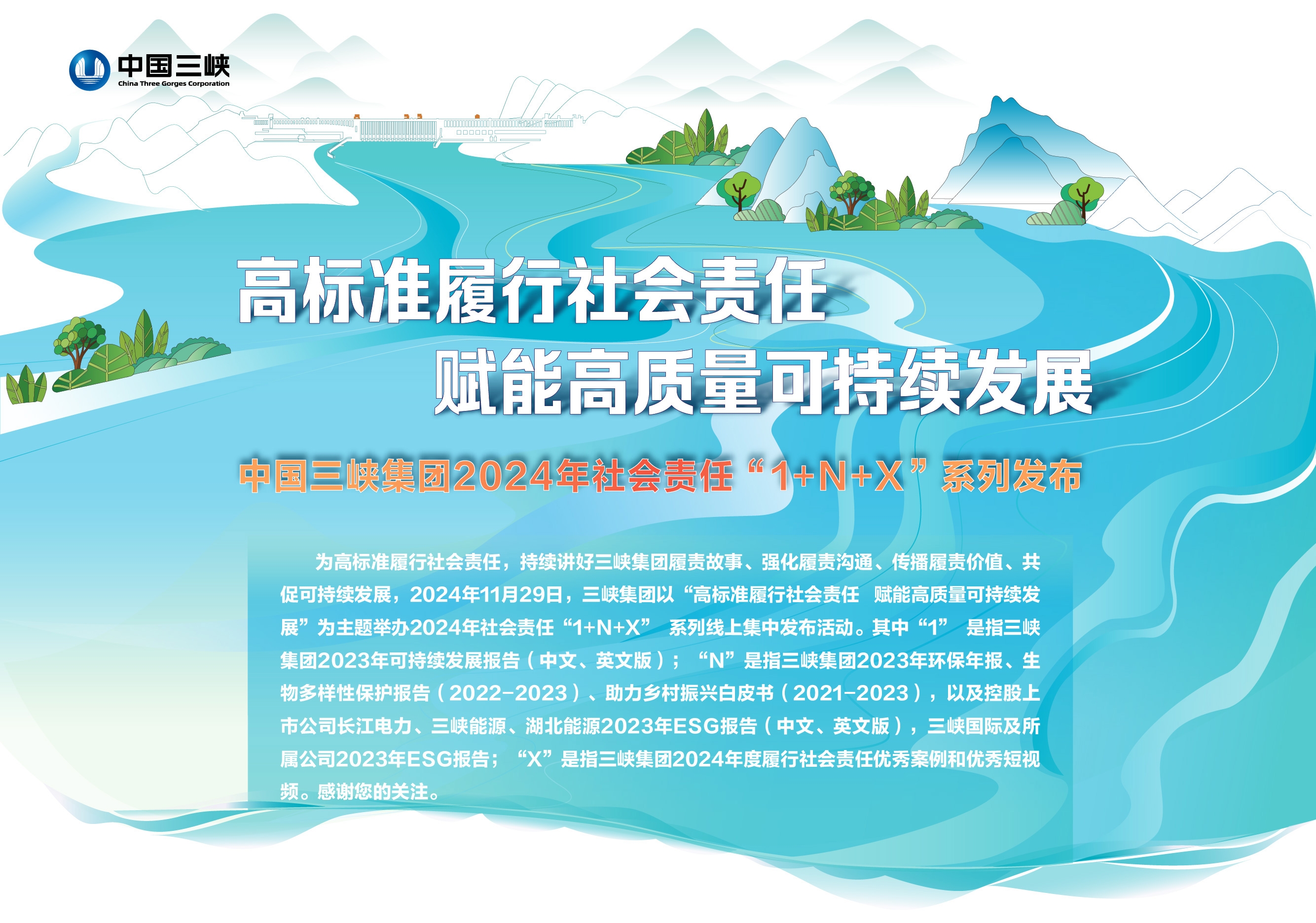 《中國長江三峽集團有限公司2023年可持續(xù)發(fā)展報告》(以下簡稱“報告”)是中國三峽集團發(fā)布的第14份可持續(xù)發(fā)展報告。報告系統(tǒng)全面地介紹了公司在經(jīng)濟、環(huán)境、社會層面積極履行社會責任的生動實踐和扎實績效,展現(xiàn)中國三峽集團而立之年為建成世界一流清... 更多>>