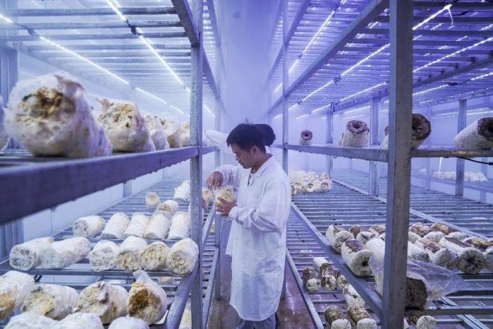 冷凍室里賀凱凡團隊正在觀察食用菌繁育狀況 攝影:陳磊