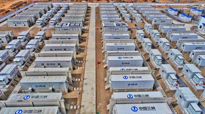2021年末,三峽烏蘭察布新一代電網友好綠色電站示范項目首批機組成功并入內蒙古電網,成為國內首個儲能配置規模達到千兆瓦時的新能源場站。電站總建設規模200萬千瓦,分為170萬千瓦風電項目和30萬千瓦光伏項目,全部投產后,年平均發電量近60億千瓦時,可滿足近30萬戶家庭月用電量(按每戶居民月用電量200千瓦時計)。項目配套建設55萬千瓦×2小時儲能系統,可儲存110臺5兆瓦風機滿發2小時產生的能量,在陰天或無風時有效“查漏補缺”,為電網系統調峰調頻等提供輔助服務。