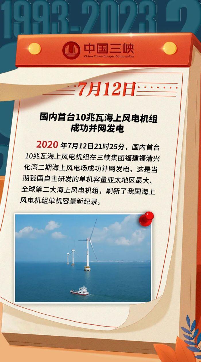 三峽 · 歷史上的今天 | 國內(nèi)首臺10兆瓦海上風(fēng)電機(jī)組成功并網(wǎng)發(fā)電(7月10日-7月16日)