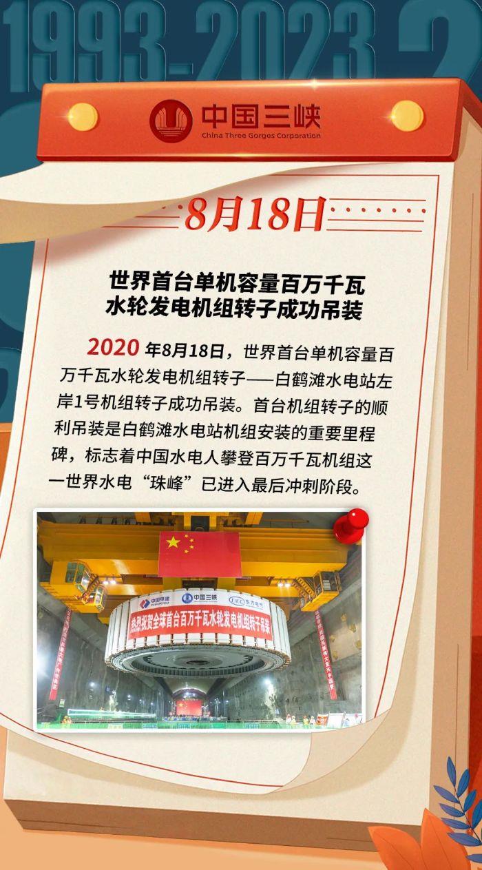 三峽 · 歷史上的今天丨世界首臺單機容量百萬千瓦水輪發電機組轉子成功吊裝(8月14日-8月20日)