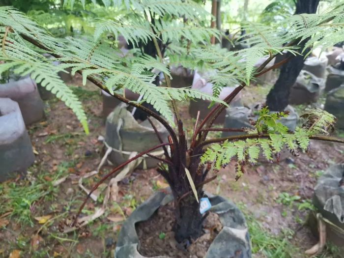 陰生桫欏是一種喬木狀的蕨類植物,有“蕨類植物之王”贊譽。它的莖干高度可達5米,直徑約8厘米,葉柄褐禾稈色至淡棕色,葉片三回羽狀深裂,生長于海拔350米-1000米林下溪邊陰濕處。由于其稀有性和特殊的生態價值,陰生桫欏被列為國家二級保護野生植物。
